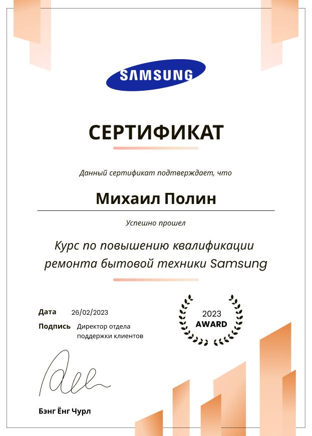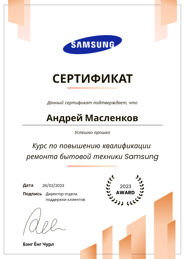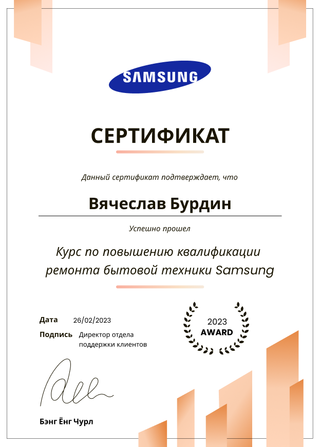 Компания Samsung profi гарантирует восстановление техники бренда в день обращения.